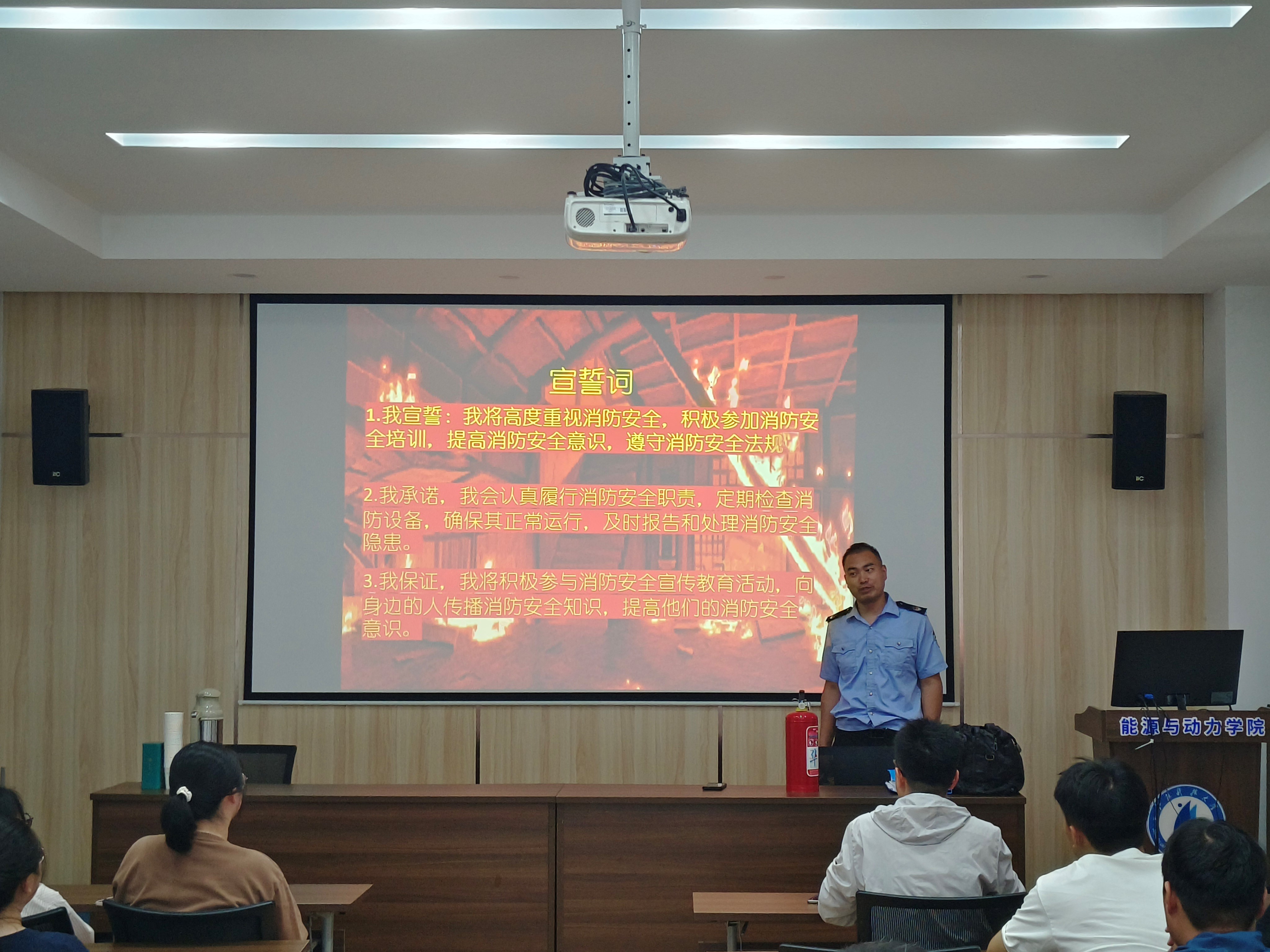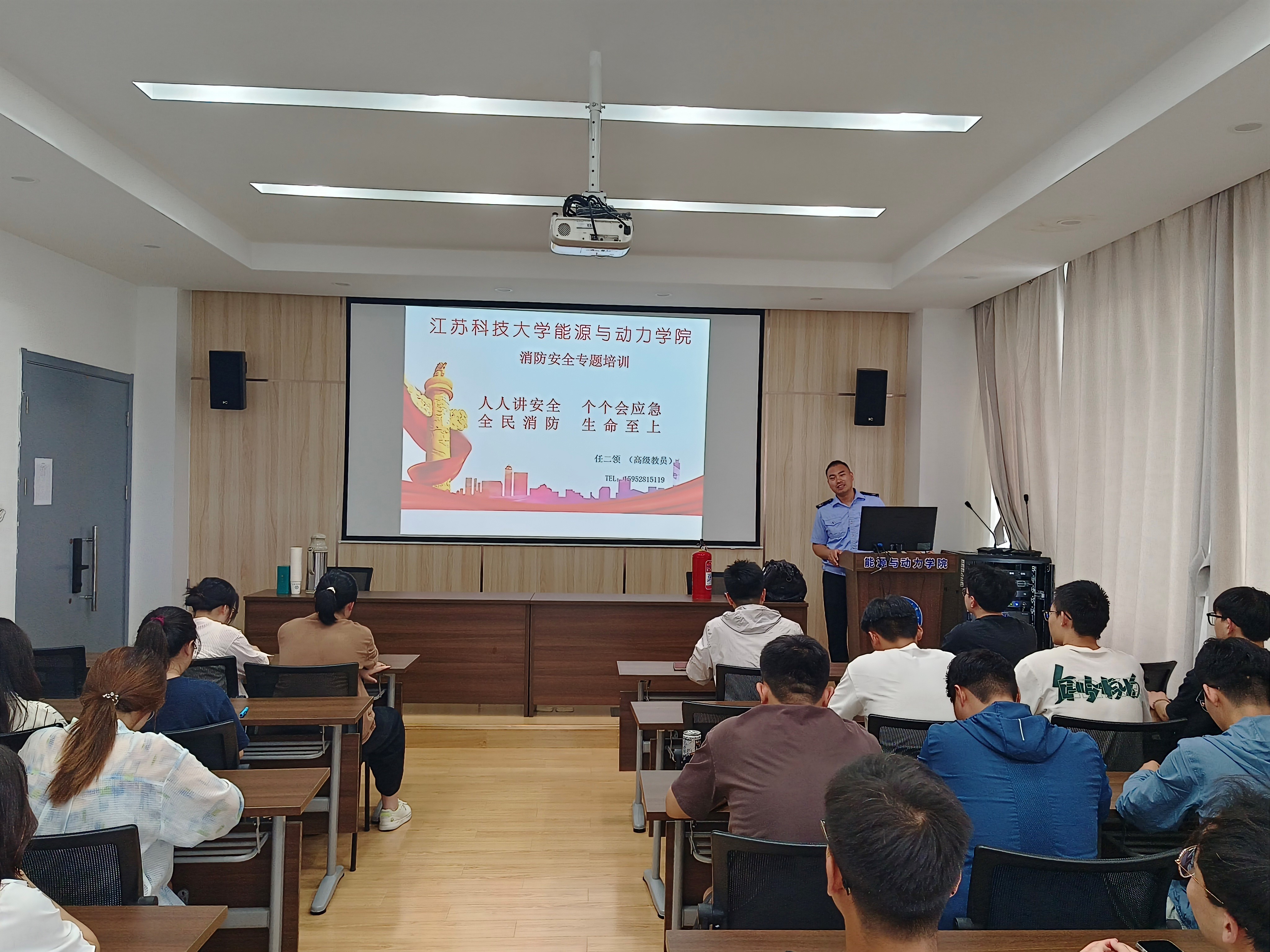 6月30日,能动学院邀请盛安防火宣教中心的任二领教员开展“人人讲安全、个个会应急”主题的消防安全专题培训,相关实验室的教师和学生参加培训。学院副院长夏兆旺主持培训,各实验室研究生参与培训。